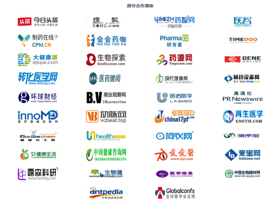 合作媒體 | 生物制藥小編、藥渡、新藥創(chuàng)始人俱樂部、藥學(xué)進(jìn)展、制藥在線、肽度、醫(yī)藥合作投融資聯(lián)盟、藥融圈、藥通社、藥物一致性評價(jià)、藥物分析之家、藥物簡訊,生物探索等40家頂尖媒體助陣報(bào)道。
