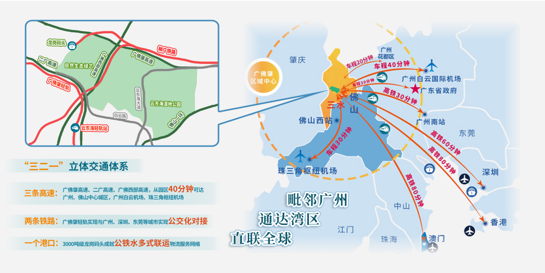 依托三條高速、兩條鐵路、一個(gè)港口的立體式交通體系,融入廣佛肇“半小時(shí)”時(shí)空圈,實(shí)現(xiàn)與大灣區(qū)核心城市無(wú)縫對(duì)接。