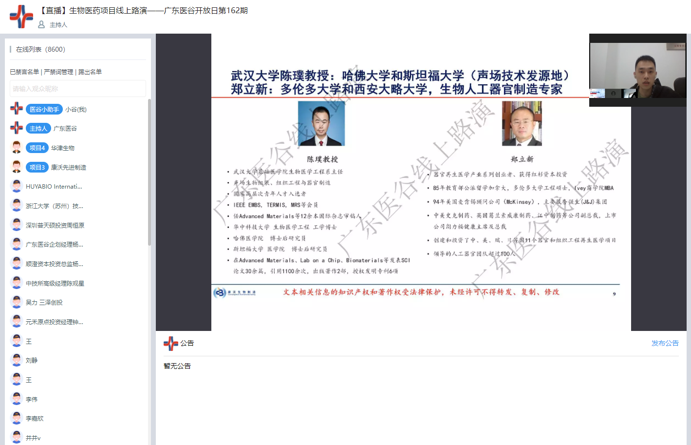 為促進(jìn)醫(yī)療健康領(lǐng)域內(nèi)優(yōu)秀項(xiàng)目與投資機(jī)構(gòu)之間的投融資信息對(duì)接,共同推進(jìn)生物醫(yī)藥行業(yè)創(chuàng)新發(fā)展,3月30日,生物醫(yī)藥項(xiàng)目線上路演——廣東醫(yī)谷開放日第162期順利在線上舉行。