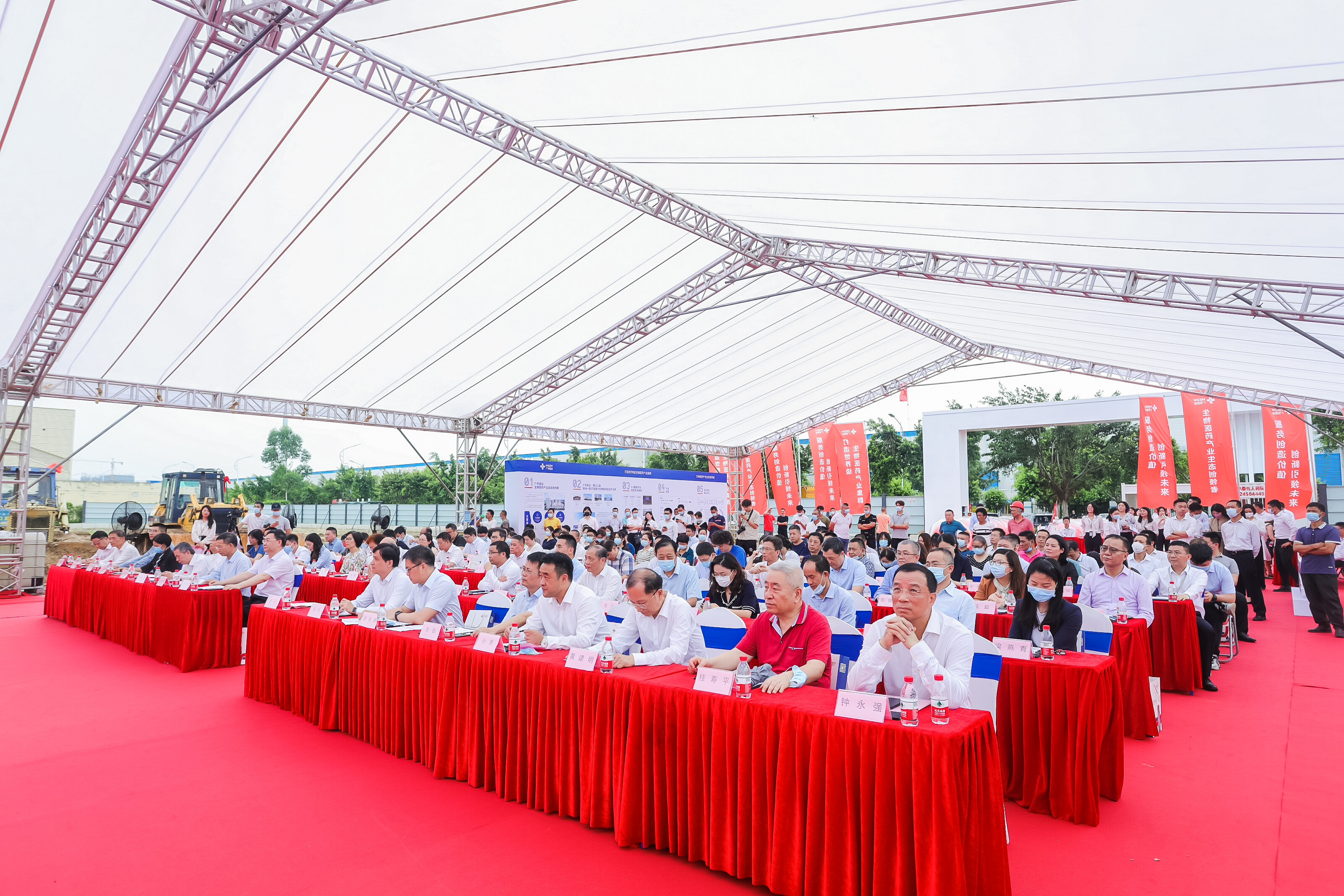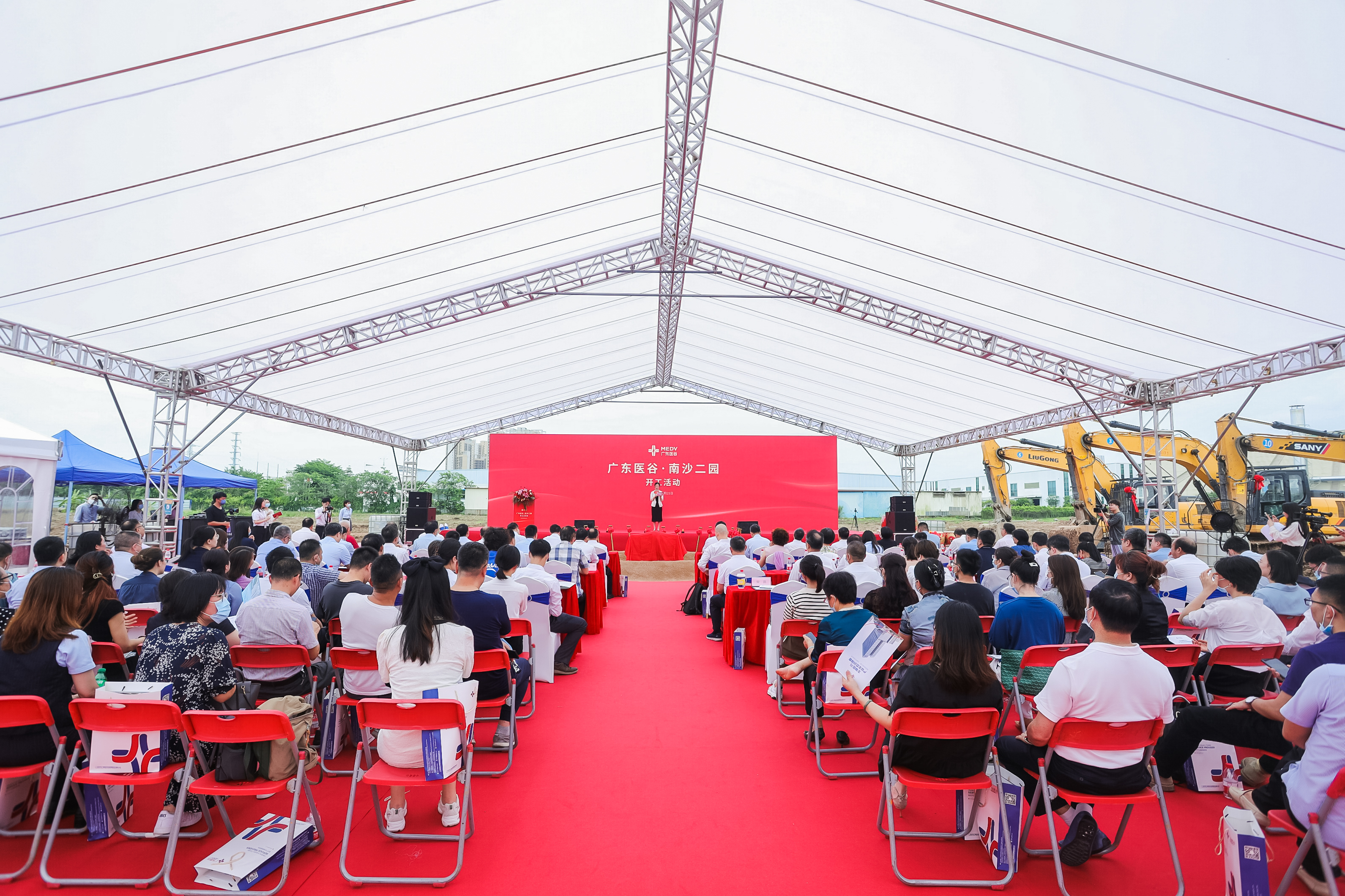 參加活動(dòng)的還有中創(chuàng)集團(tuán)總裁鄭貴輝,中山大學(xué)國(guó)際金融學(xué)院院長(zhǎng)黃新飛,廣東藥科大學(xué)臨床藥學(xué)院院長(zhǎng)李雄,廣東藥科大學(xué)中藥學(xué)院院長(zhǎng)何新,廣東藥科大學(xué)醫(yī)藥商學(xué)院黨委書(shū)記楊苑芬,南沙區(qū)委常委、區(qū)委宣傳部部長(zhǎng)孫勇,南沙區(qū)人大常委會(huì)副主任冷瑞華,中共廣東省食品醫(yī)藥行業(yè)聯(lián)合黨委書(shū)記張俊修,原廣東省中小企業(yè)局副局長(zhǎng)黃建明,比利時(shí)王國(guó)駐廣州總領(lǐng)事館瓦隆地區(qū)商務(wù)處高級(jí)商務(wù)總監(jiān)黃晨,英國(guó)駐廣州總領(lǐng)事館大中華區(qū)醫(yī)療體系負(fù)責(zé)人蘇睿,澳大利亞貿(mào)易投資委員會(huì)商務(wù)官員馮玲,以色列駐廣州總領(lǐng)事館商務(wù)主任張瀟尹,華南理工大學(xué)桂壽平教授,暨南大學(xué)陳海權(quán)教授,廣東省物流與供應(yīng)鏈學(xué)會(huì)副會(huì)長(zhǎng)、廣東財(cái)經(jīng)大學(xué)林勛亮教授,南方醫(yī)院藥學(xué)部主任侯連兵教授,南方醫(yī)院陳國(guó)奮教授,暨南大學(xué)臨床腫瘤研究所所長(zhǎng)、特賽免疫董事長(zhǎng)和首席科學(xué)家李亮平教授,南沙區(qū)市場(chǎng)監(jiān)管局局長(zhǎng)鄭康,南沙區(qū)衛(wèi)健局副局長(zhǎng)高立,南沙區(qū)工信局副局長(zhǎng)涂剛,南沙區(qū)投資促進(jìn)局副局長(zhǎng)李璐,南沙區(qū)住建局副局長(zhǎng)桂建文,南沙開(kāi)發(fā)區(qū)土地開(kāi)發(fā)中心副主任周炯,南沙區(qū)珠江街道黨工委委員、辦事處副主任梁燕青,廣州市南沙新區(qū)產(chǎn)業(yè)園管理局副局長(zhǎng)蔡銀鴻,廣東省醫(yī)療管理學(xué)會(huì)名譽(yù)董事長(zhǎng)鐘永強(qiáng),廣東省醫(yī)療器械行業(yè)協(xié)會(huì)會(huì)長(zhǎng)吳楚升,廣州醫(yī)藥行業(yè)協(xié)會(huì)黨支部書(shū)記、副會(huì)長(zhǎng)李仕平,佛山口腔協(xié)會(huì)會(huì)長(zhǎng)尹源洪副會(huì)長(zhǎng)鄭慧芳,中山醫(yī)療器械行業(yè)協(xié)會(huì)會(huì)長(zhǎng)王勝嵐,建設(shè)銀行南沙分行行長(zhǎng)肖坤,農(nóng)業(yè)銀行海珠支行行長(zhǎng)周繼興,中國(guó)銀行南沙分行副行長(zhǎng)曾卉,廣州銀行南沙分行風(fēng)險(xiǎn)總監(jiān)李冰,粵科金融副總經(jīng)理黎全輝,中大創(chuàng)投董事楊毅峰、監(jiān)事阮鎮(zhèn)祥,中創(chuàng)灣區(qū)基金聯(lián)合創(chuàng)始人孫亞勤,廣州三美投資執(zhí)行合伙人王超,粵港澳大灣區(qū)高性能醫(yī)療器械創(chuàng)新中心總經(jīng)理常靜,大灣區(qū)博士后公共研究中心執(zhí)行秘書(shū)長(zhǎng)林津,中電二公司華南區(qū)域總經(jīng)理董恒明,凱泰科董事會(huì)秘書(shū)黃柱恒,領(lǐng)晟醫(yī)療CEO宋燕,廣東省重工建筑設(shè)計(jì)院副院長(zhǎng)李德昆,北京奈特瑞科技創(chuàng)始人兼CEO曲毅,邏格斯總經(jīng)理張鑒睿,思遠(yuǎn)(廣東)工程總經(jīng)理紀(jì)建華,廣東醫(yī)谷執(zhí)行總裁謝嘉生中國(guó)新聞網(wǎng)、廣東廣播電視臺(tái)、南沙新區(qū)報(bào)、南方財(cái)經(jīng)、南方醫(yī)學(xué)網(wǎng)等媒體代表,以及眾多來(lái)自政府相關(guān)部門(mén)、高校醫(yī)院、行業(yè)協(xié)會(huì)、生物醫(yī)藥企業(yè)、投資機(jī)構(gòu)、服務(wù)機(jī)構(gòu)等100余嘉賓代表,現(xiàn)場(chǎng)共同見(jiàn)證了廣東醫(yī)谷?南沙二園項(xiàng)目正式開(kāi)工的重要時(shí)刻。