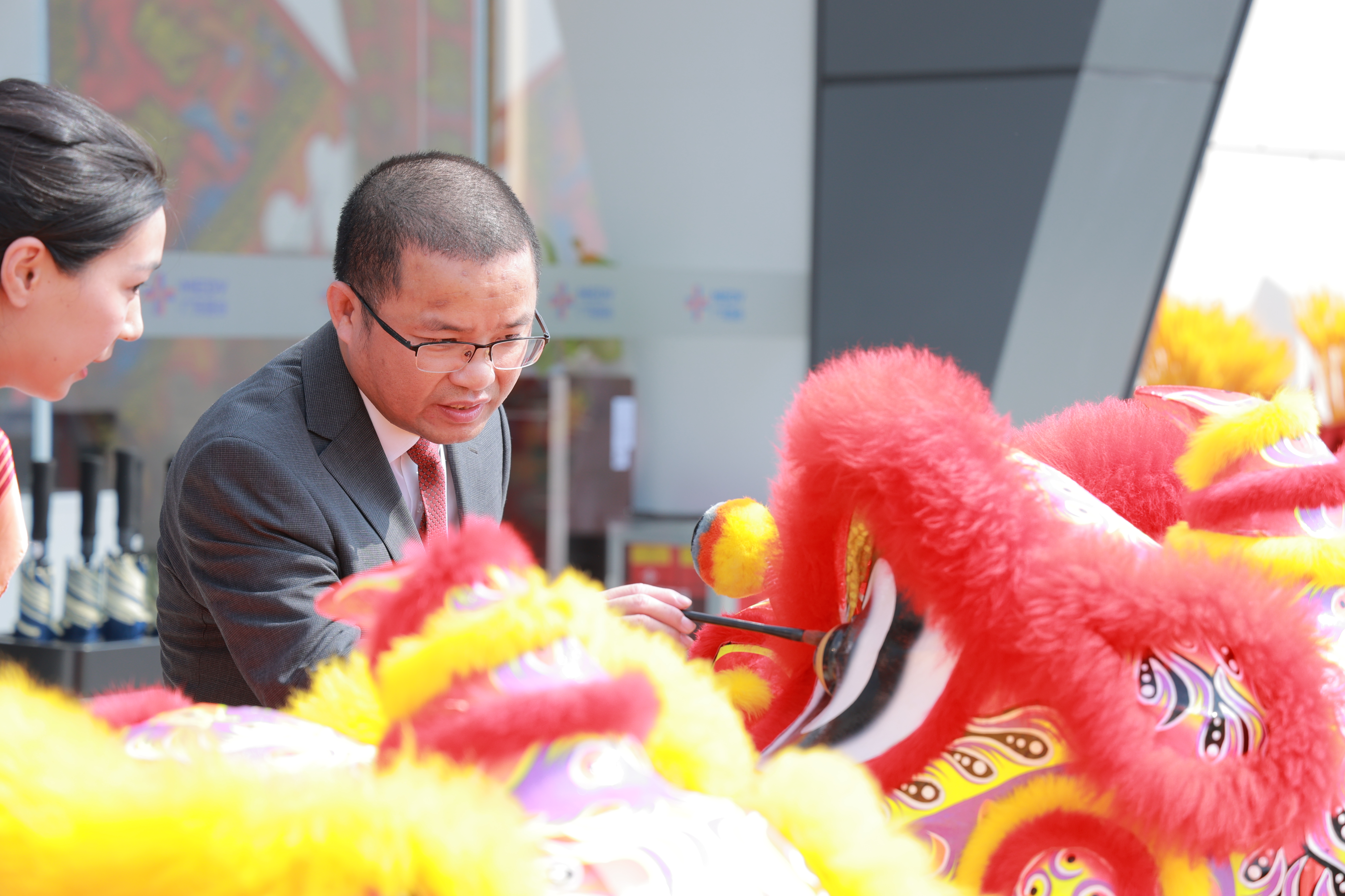 接下來(lái)進(jìn)行精彩的醒獅采青表演,醒獅神采奕奕,騰躍歡舞,躍然而起,騰挪翻轉(zhuǎn),生動(dòng)細(xì)膩地演繹了“獅之百態(tài)”。