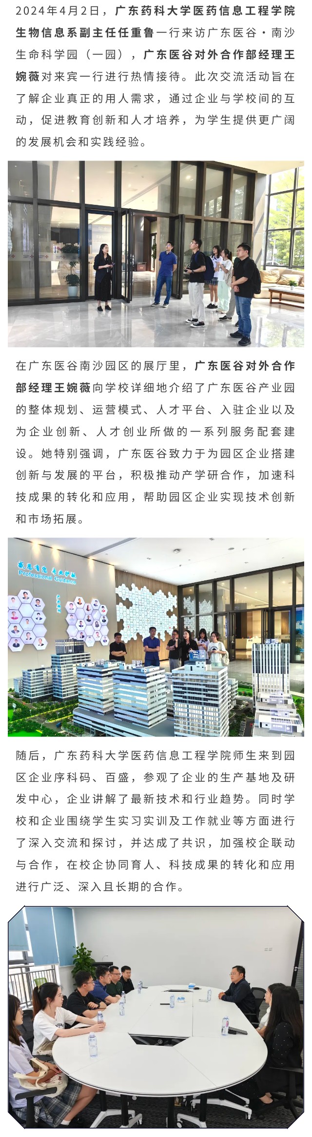 廣東藥科大學(xué)醫(yī)藥信息工程學(xué)院師生來訪廣東醫(yī)谷考察交流