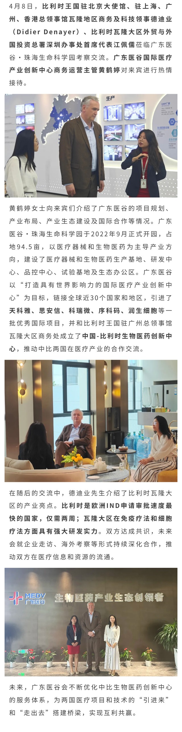 比利時駐北京大使館瓦隆地區(qū)商務及科技領事德迪業(yè)蒞臨廣東醫(yī)谷考察