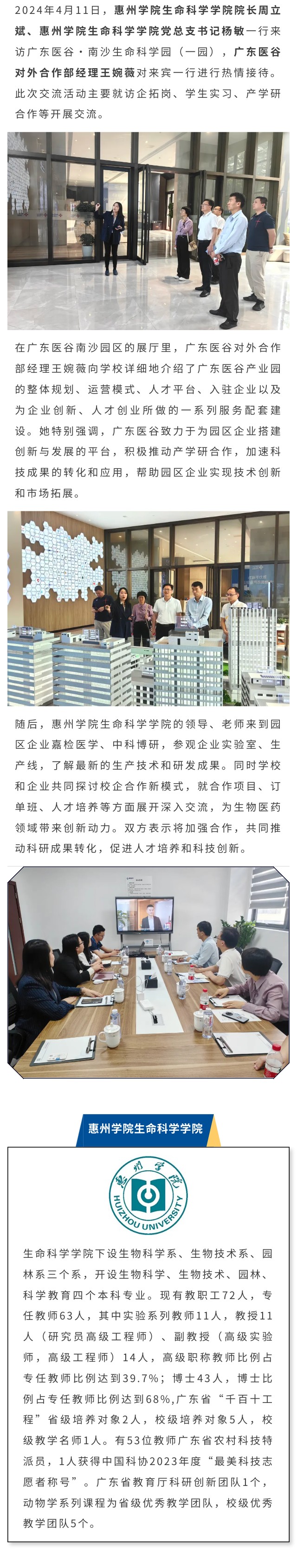 惠州學(xué)院生命科學(xué)學(xué)院領(lǐng)導(dǎo)來訪廣東醫(yī)谷考察交流