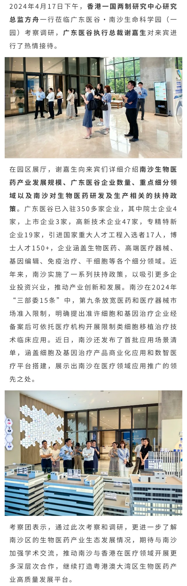 一國兩制研究中心課題組一行蒞臨廣東醫(yī)谷考察調(diào)研