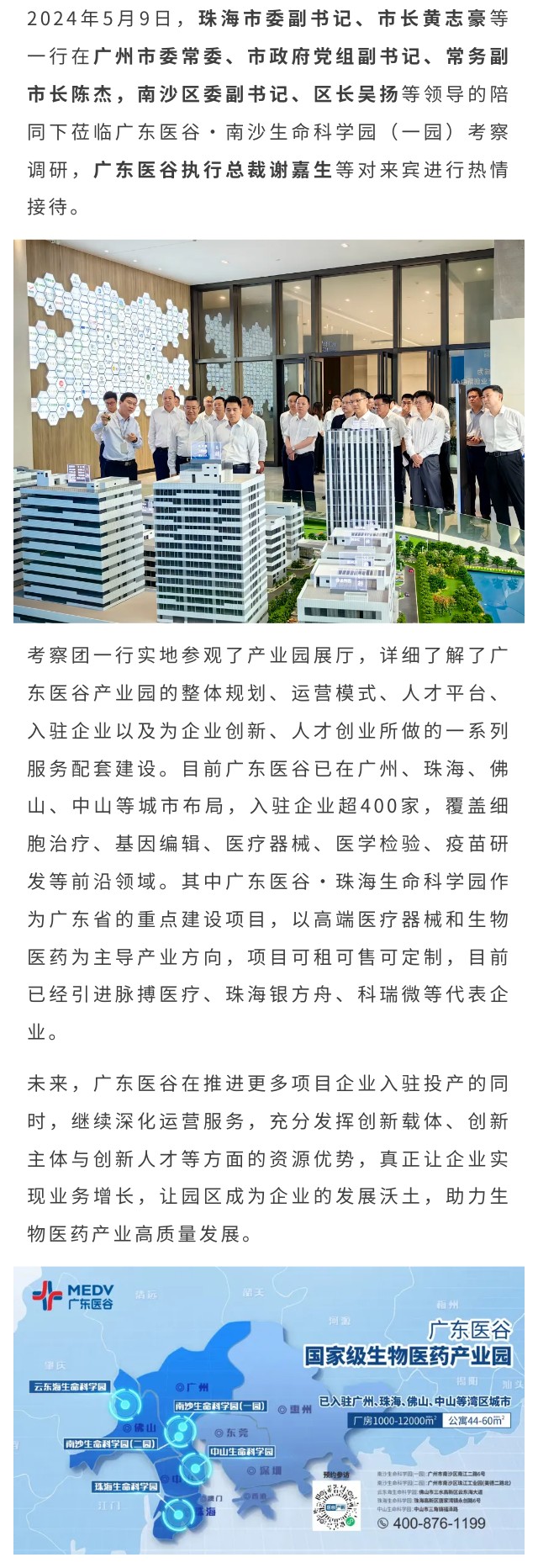 珠海市政府領(lǐng)導(dǎo)一行蒞臨廣東醫(yī)谷考察調(diào)研