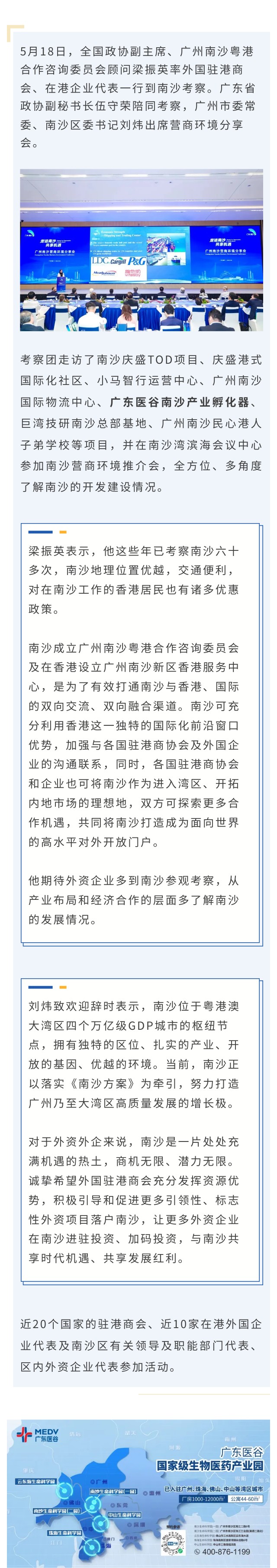 全國(guó)政協(xié)副主席、廣州南沙粵港合作咨詢委員會(huì)顧問(wèn)梁振英率外國(guó)駐港商會(huì)、在港企業(yè)代表蒞臨南沙廣東醫(yī)谷考察