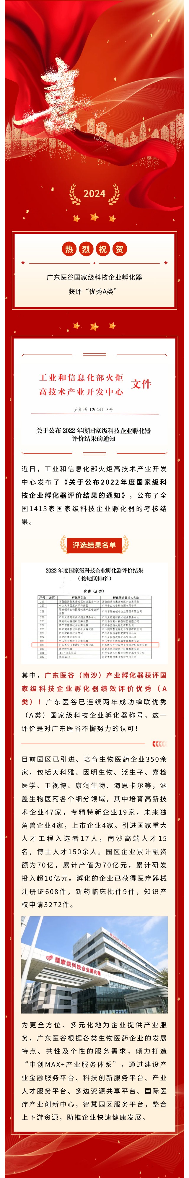 【喜訊】 廣東醫(yī)谷連續(xù)兩年獲國家級(jí)科技企業(yè)孵化器評(píng)價(jià)優(yōu)秀(A類)