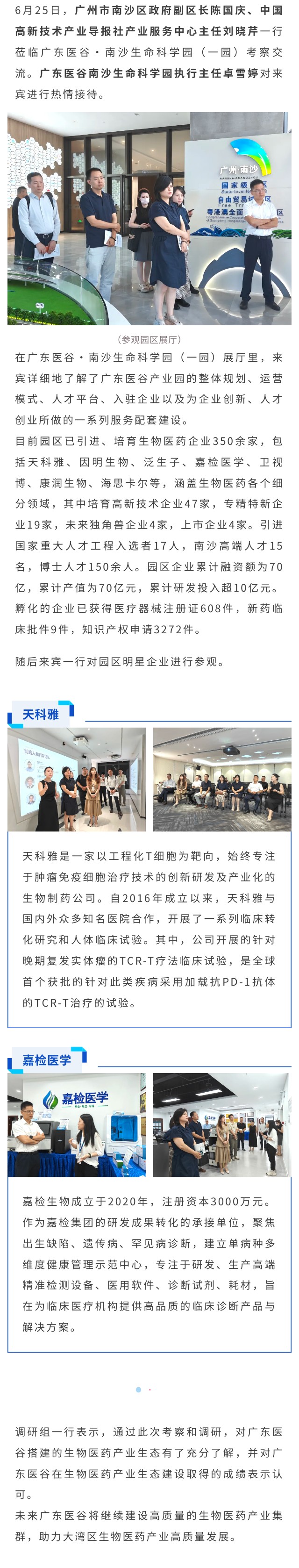 廣州市南沙區(qū)政府副區(qū)長陳國慶、中國高新技術(shù)產(chǎn)業(yè)導(dǎo)報(bào)社產(chǎn)業(yè)服務(wù)中心主任劉曉芹一行蒞臨廣東醫(yī)谷考察交流