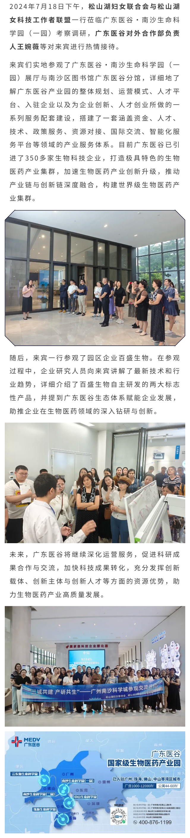 松山湖婦女聯(lián)合會(huì)與松山湖女科技工作者聯(lián)盟一行蒞臨廣東醫(yī)谷考察調(diào)研