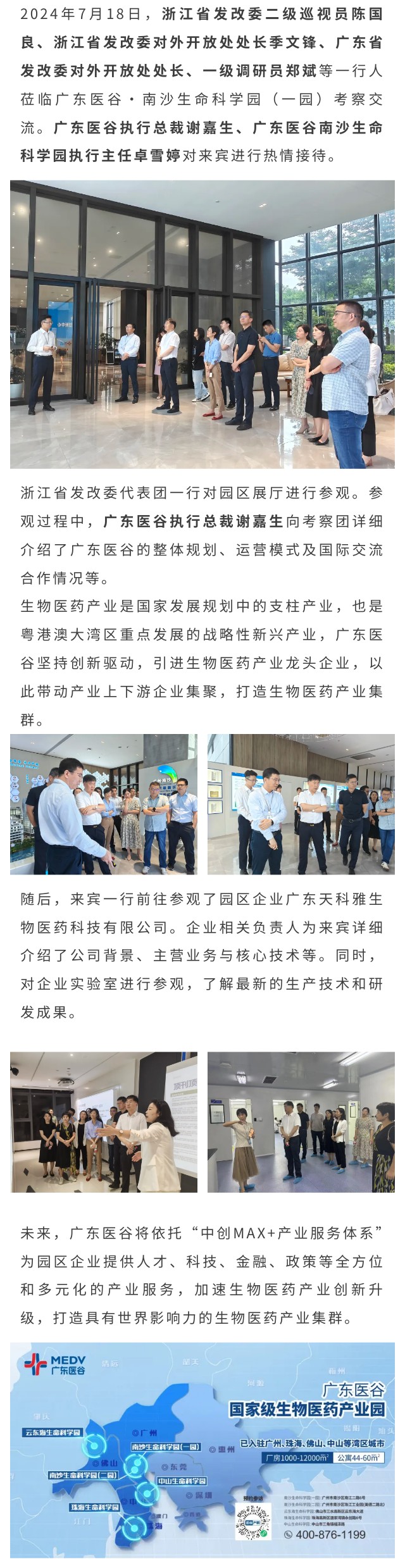 浙江省發(fā)改委代表團(tuán)蒞臨廣東醫(yī)谷·南沙生命科學(xué)園(一園)考察交流