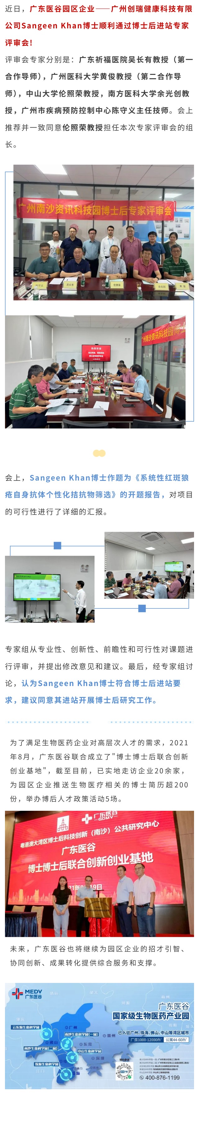 【園區(qū)企業(yè)動態(tài)】熱烈祝賀創(chuàng)瑞健康Sangeen Khan博士順利通過博士后進(jìn)站專家評審會!