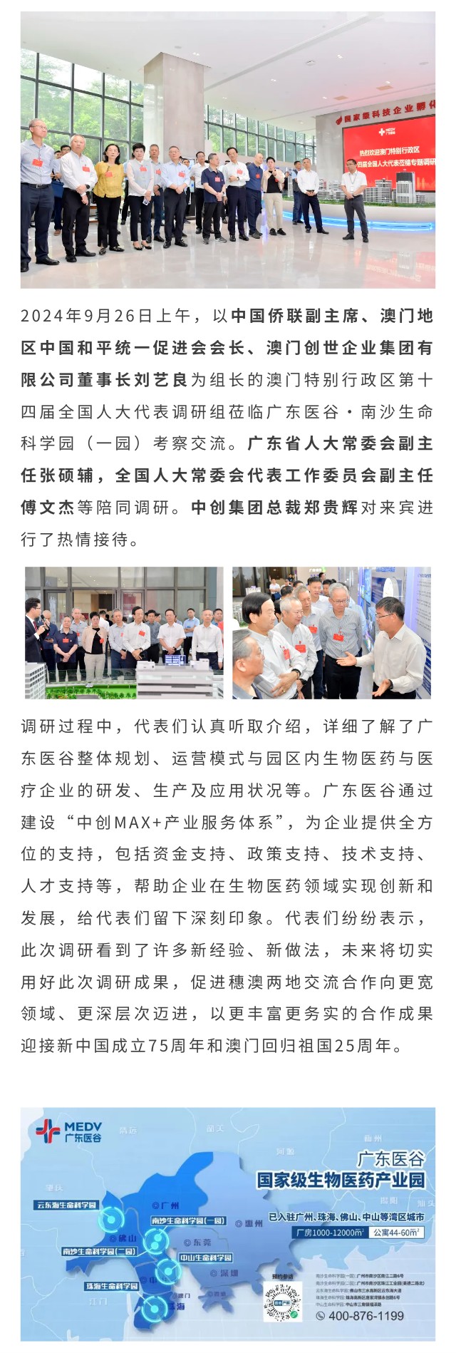 澳門特別行政區(qū)第十四屆全國人大代表調(diào)研組蒞臨廣東醫(yī)谷考察交流