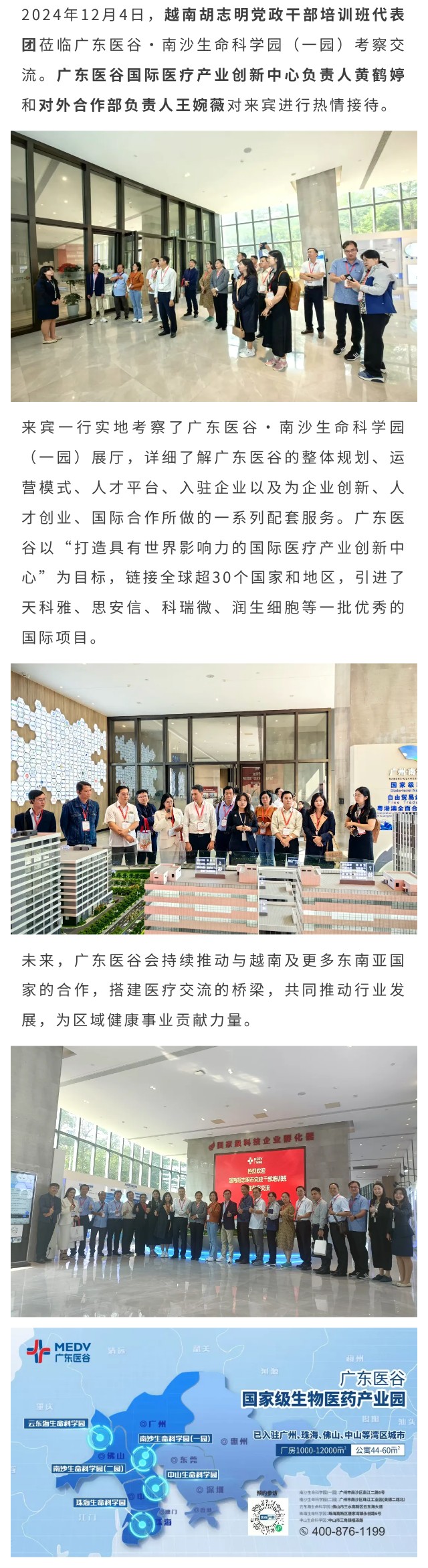 越南胡志明市黨政干部培訓班代表團蒞臨廣東醫(yī)谷考察交流