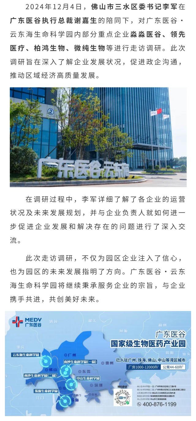 佛山市三水區(qū)委書記李軍蒞臨廣東醫(yī)谷調(diào)研