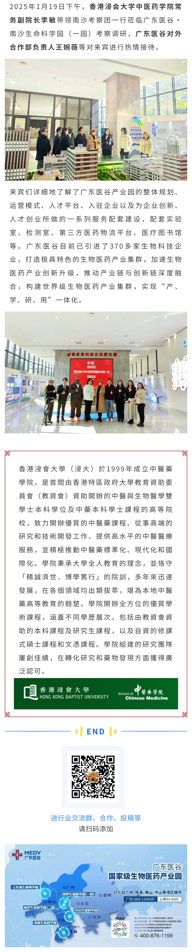 香港浸會大學(xué)中醫(yī)藥學(xué)院南沙考察團(tuán)一行蒞臨廣東醫(yī)谷考察調(diào)研