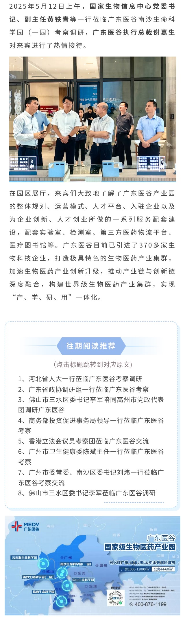 國(guó)家生物信息中心黨委書記、副主任黃鐵青一行蒞臨廣東醫(yī)谷考察調(diào)研