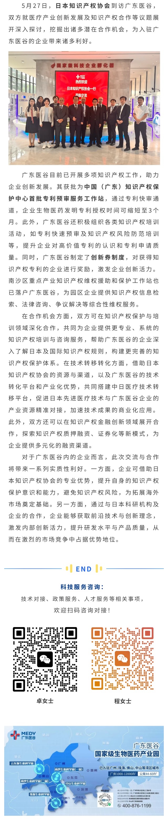 日本知識產(chǎn)權(quán)協(xié)會蒞臨廣東醫(yī)谷考察交流
