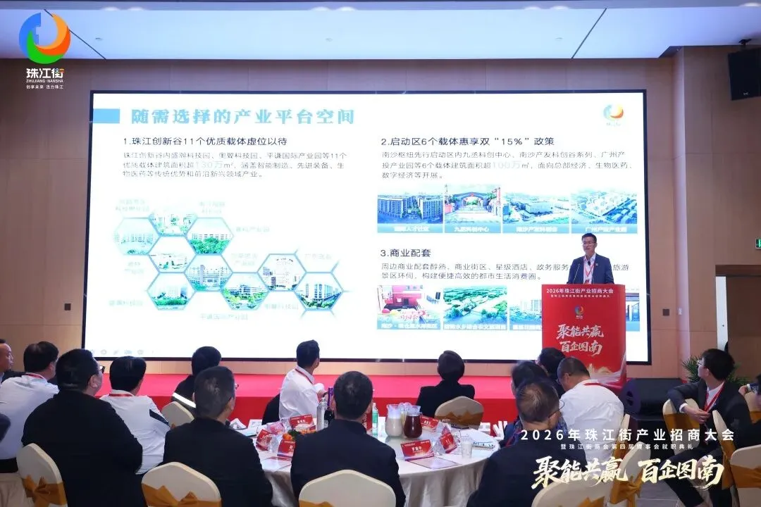 “今天,我們正站在一個(gè)歷史的交匯點(diǎn)上”珠江街道辦事處主要負(fù)責(zé)同志在推介環(huán)節(jié)亮出“獨(dú)家名片”——2028年,粵港澳大灣區(qū)重大交通樞紐“南沙站”將投入使用,珠江街即將躍升為人流、物流、資金流、信息流匯聚的灣區(qū)新門(mén)戶。他表示,珠江街已搭建好適合各類(lèi)企業(yè)成長(zhǎng)發(fā)展的空間舞臺(tái),誠(chéng)邀海內(nèi)外投資者、創(chuàng)業(yè)者共享時(shí)代機(jī)遇。