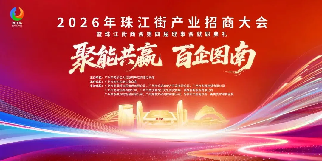 3月20日,“聚能共贏 百企圖南”2026年珠江街產(chǎn)業(yè)招商大會(huì)暨珠江街商會(huì)第四屆理事會(huì)就職典禮在奧翼科技園圓滿舉行!