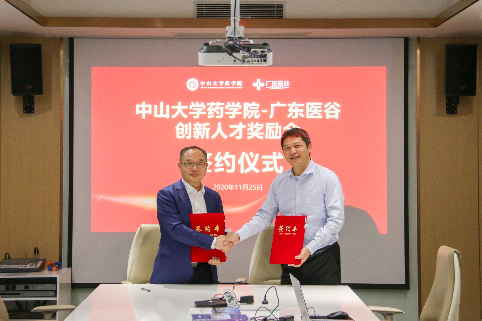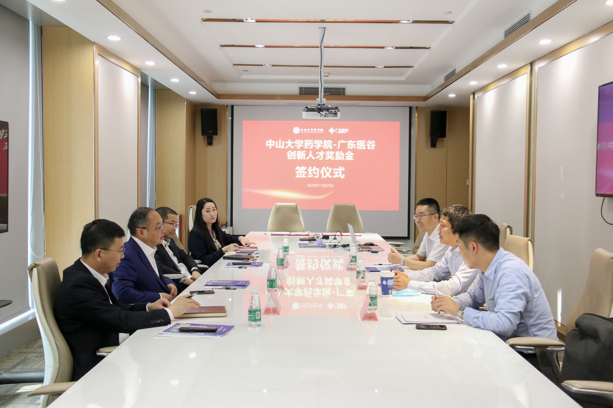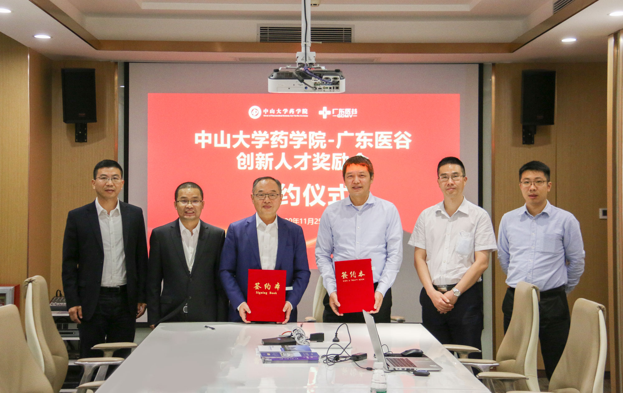 為培養(yǎng)高質(zhì)量、高層次生物醫(yī)藥創(chuàng)新人才,推動(dòng)創(chuàng)新項(xiàng)目及科研成果落地轉(zhuǎn)化及產(chǎn)學(xué)研深度融合發(fā)展,中創(chuàng)集團(tuán)董事長(zhǎng)舒元與中山大學(xué)藥學(xué)院院長(zhǎng)胡文浩于2020年11月25日簽約成立中山大學(xué)藥學(xué)院-廣東醫(yī)谷創(chuàng)新人才獎(jiǎng)勵(lì)金,中山大學(xué)藥學(xué)院黨委副書(shū)記李顥 、中創(chuàng)集團(tuán)總裁鄭貴輝、廣東醫(yī)谷執(zhí)行總裁謝嘉生出席了簽約儀式。