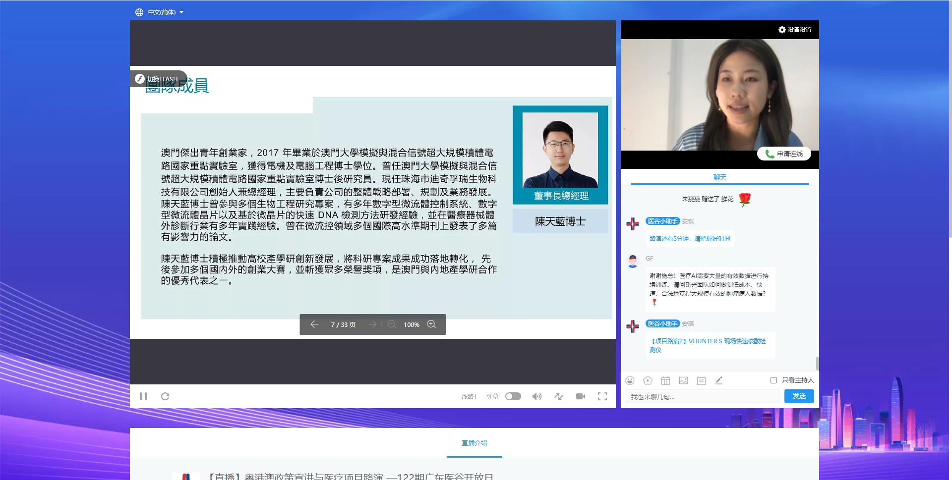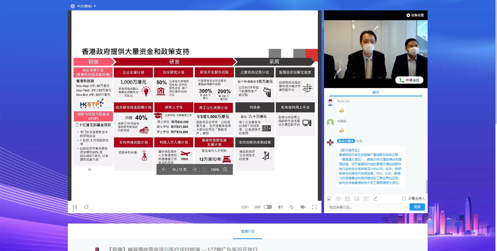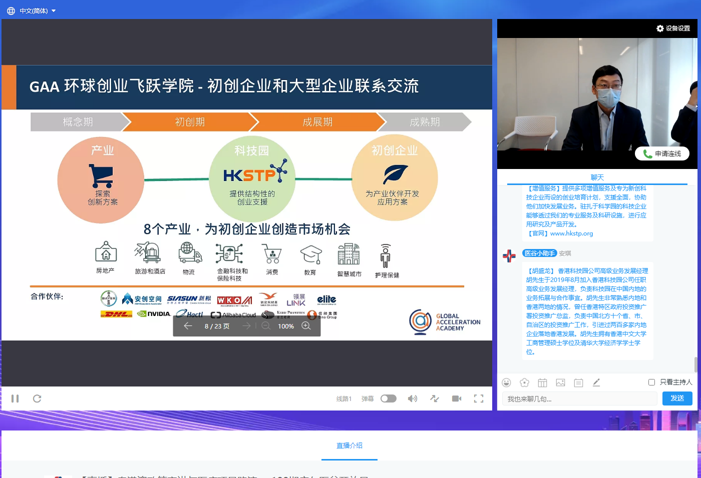 香港科技園公司高級(jí)業(yè)務(wù)發(fā)展經(jīng)理胡盛龍介紹了香港科技園的科創(chuàng)生態(tài)及如何融入打完去的發(fā)展戰(zhàn)略與布局。香港科技園自成立以來(lái),通過(guò)發(fā)展重點(diǎn)科技領(lǐng)域,包括生物醫(yī)藥、電子、綠色科技、資訊及通訊科技、物料與精密工程,帶領(lǐng)香港成為地區(qū)的創(chuàng)新及科技樞紐。香港科技園為科技公司提供科研設(shè)施及基礎(chǔ)建設(shè),設(shè)置市場(chǎng)主導(dǎo)的實(shí)驗(yàn)室及技術(shù)中心并附設(shè)技術(shù)支援服務(wù)。通過(guò)融合香港科技園與私人投資者的豐富資源成立香港科技園創(chuàng)投基金,以專(zhuān)業(yè)力量助創(chuàng)科企業(yè)把創(chuàng)新技術(shù)落地到應(yīng)用領(lǐng)域,全力支持創(chuàng)新科技發(fā)展 , 培育本地科技初創(chuàng)公司, 創(chuàng)造改變世界的機(jī)遇。