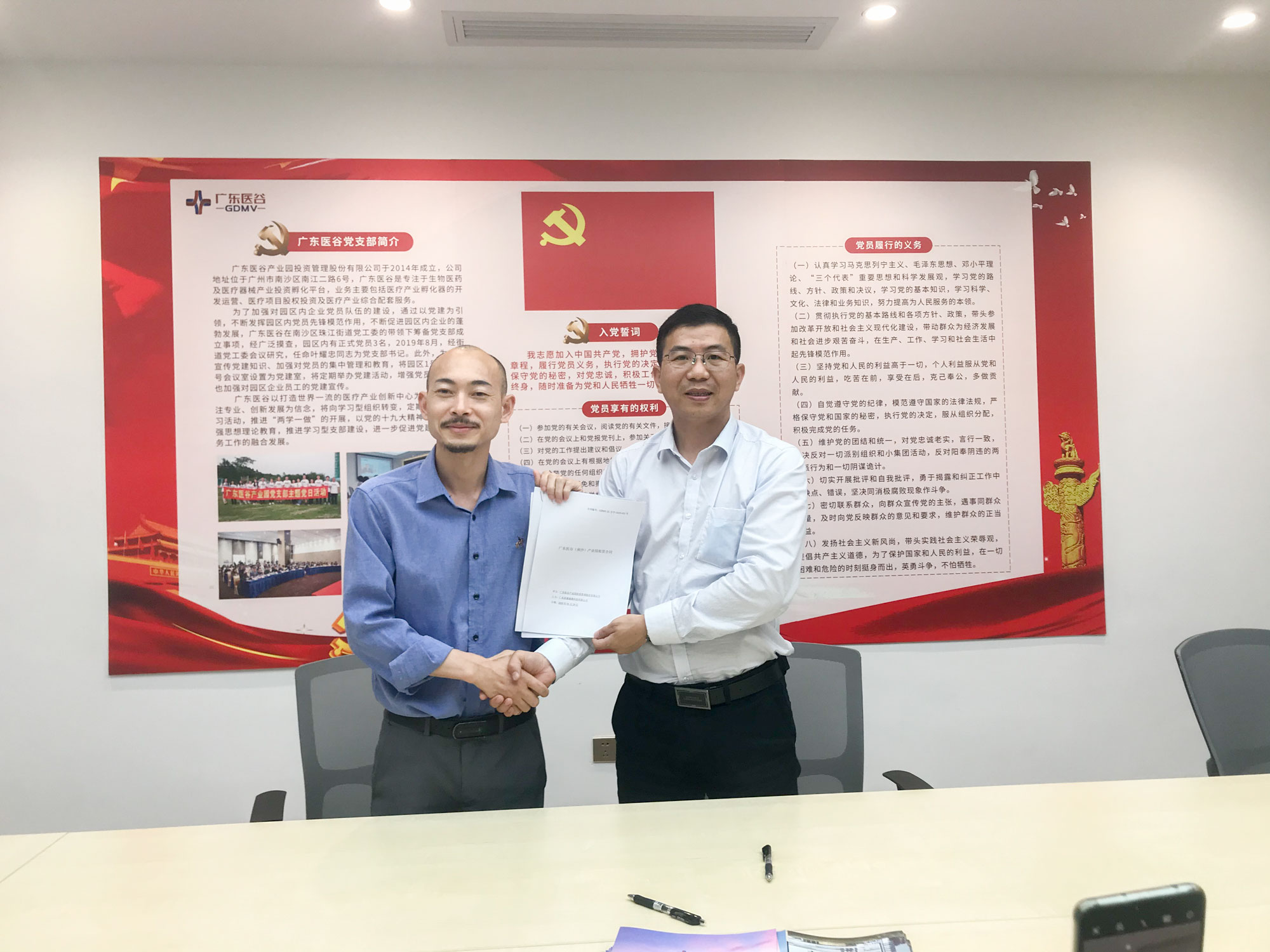 與廣東醫(yī)谷執(zhí)行總裁謝嘉生,現(xiàn)場簽訂了園區(qū)入駐協(xié)議。