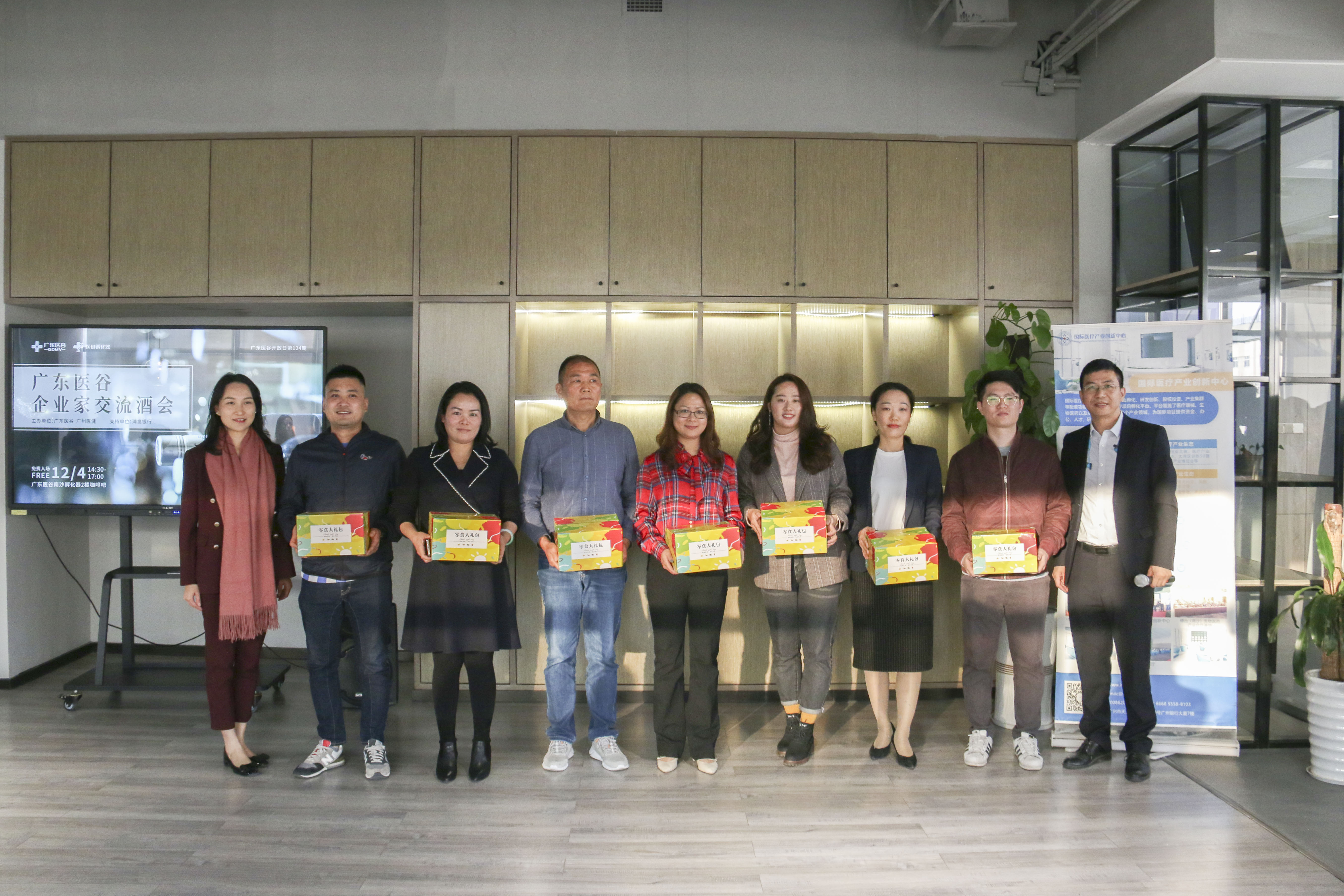 In order to promote cooperation and exchanges between enterprises in the incubator, on December 4, GDMV Entrepreneurs Exchange Party was successfully held in GDMV Nansha Incubator. Zhang Jiamao, Director of the Development and Reform Bureau of Nansha District, Feng Jie, Deputy Director of the Science and Technology Bureau of Nansha District, Wu Jin, Deputy Director of the Nansha District Bureau of Commerce, Ou Wei, Corporate Business Manager of Shanghai Pudong Development Bank Guangzhou Branch Zhujiang New Town Branch, Shanghai Pudong Development Bank Guangzhou Branch Small Business Financial Service Center Deputy General Manager Li Junfang, Shanghai Pudong Development Bank Guangzhou Branch Small Business Financial Service Center Product Manager Lin Jiebin, Xie Jiasheng, CEO of GDMV and Yichenyun Health, Sianxin Biotechnology, Baisheng Biotechnology and other entrepreneur representatives gathered together and Seek development.